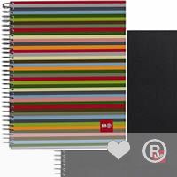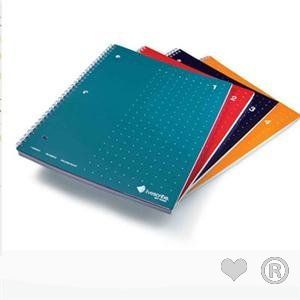 1. Type: Wire bound, single spiral in silver, white, black or various color (can be plastic or metal spiral also) 2. Size: 14X10.2 cm 3. Front Cover: PP cover in uni or full color printing 4. Bank Cover: 550GSM grey board 5. Inner: 70GSM white paper, 180 sheets, narrow rule printing, different rulings are available as below. 6. Dividers: None/3/4/5 as you like 7. Designs: Lined printing, can be ruling with margin line or squared printing.