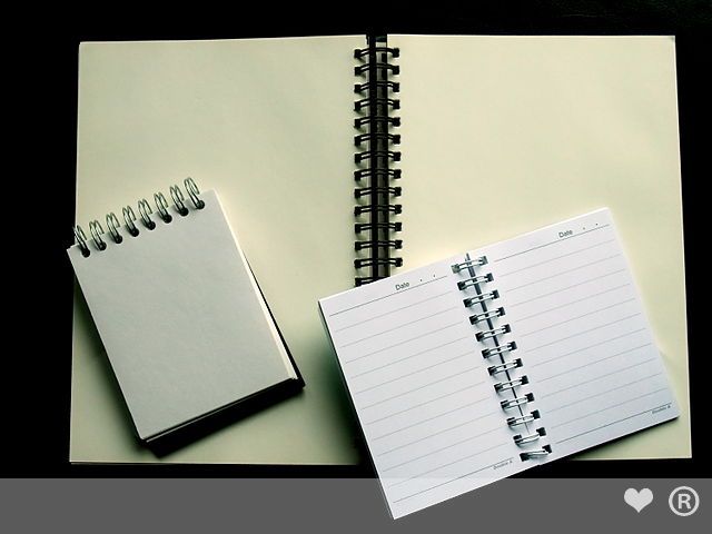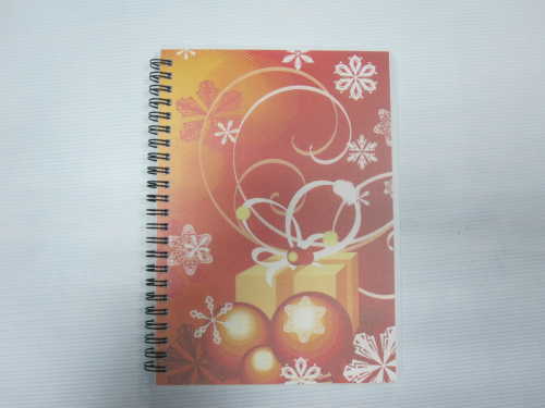 Product Specifications : 1.Type: Wire bound, single spiral in silver, white, black or various color (can be plastic or metal spiral also) 2. Size: 14X10.2 cm 3. Front Cover: PP cover in uni or full color printing 4. Bank Cover: 550GSM grey board 5. Inner: 70GSM white paper, 1